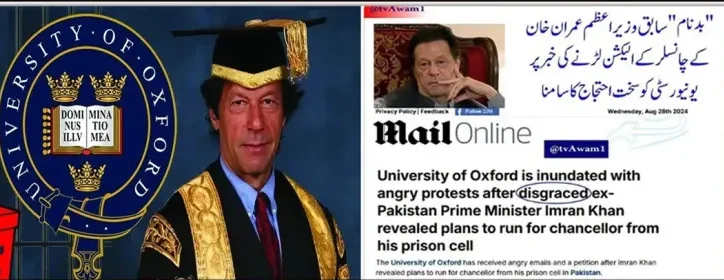 بانی پی ٹی آئی عمران خان کے تاریخی آکسفورڈ یونیورسٹی کے چانسلر کا الیکشن لڑنے کے اعلان پر برطانوی اخبار ڈیلی میل نے اپنی ایک خبر میں سابق وزیر اعظم کے ساتھ ’ڈس گریس‘کا لفظ استعمال کر کے پاکستانی یوتھیوں کو آگ لگا دی ہے۔ جس کے بعد عمرانڈوز نے سوشل میڈیا پر طوفان برپا کر رکھا ہے۔